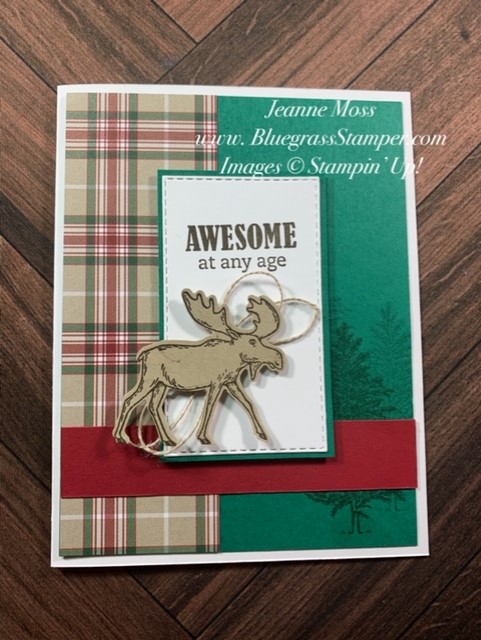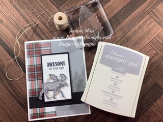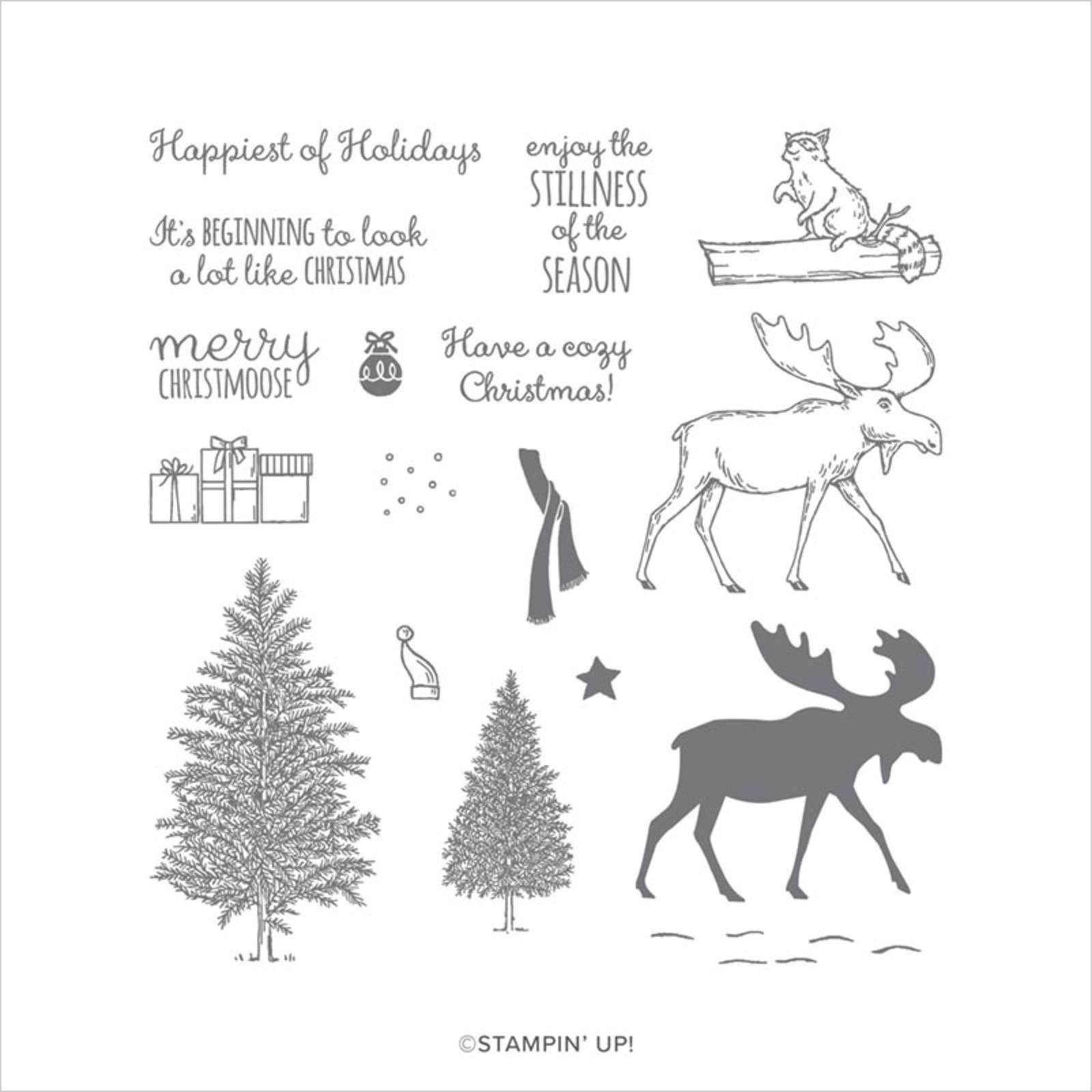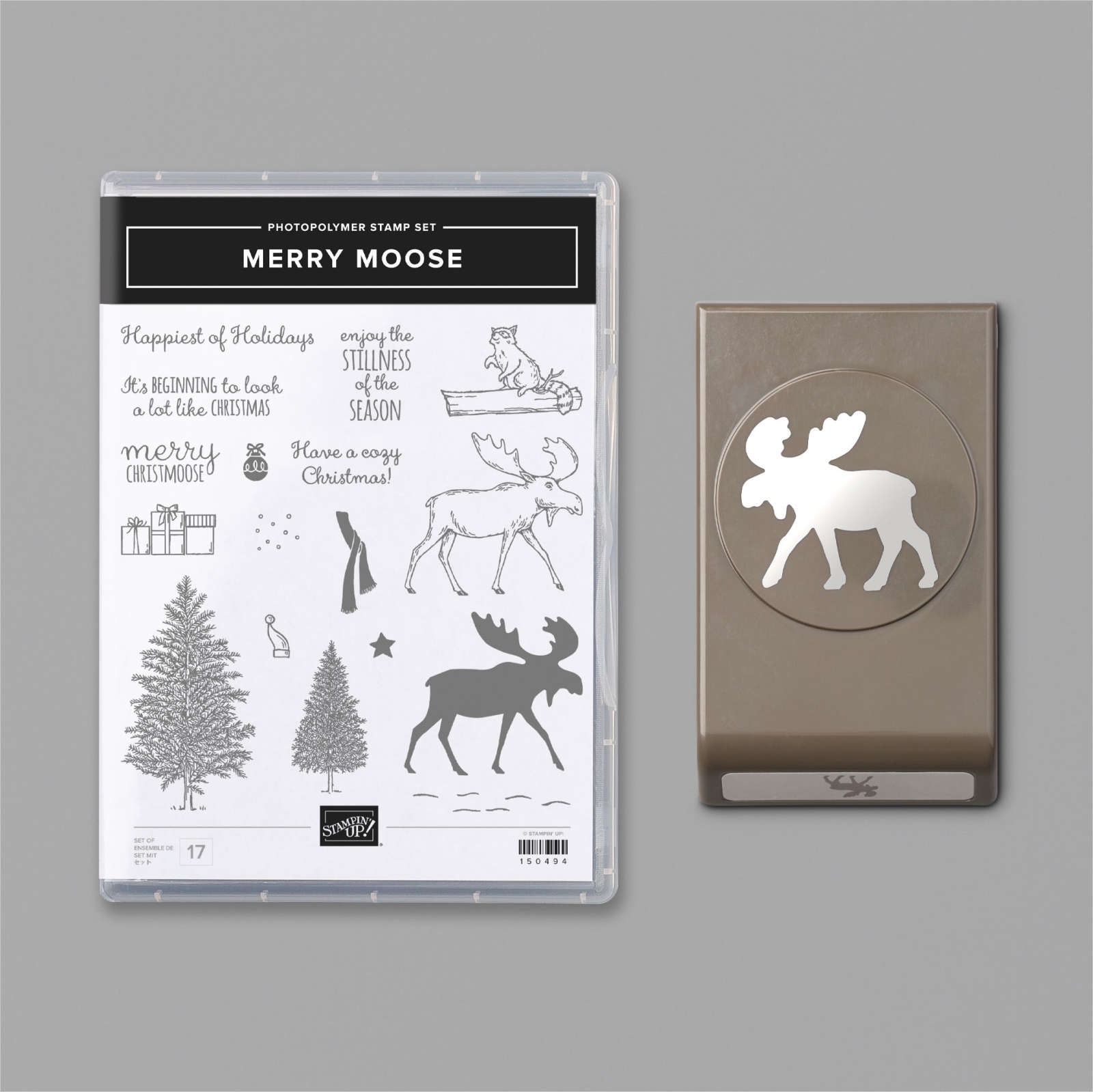 My project uses the Merry Moose stamp set and Moose punch. These were in last year’s holiday catalog, but they sold out so quickly that most people weren’t able to get them. To help with that disappointment, Stampin’ Up! brought these back in this year’s August-December Mini Catalog, and they’re still bundled!! That means you can still save 10% when you purchase both.