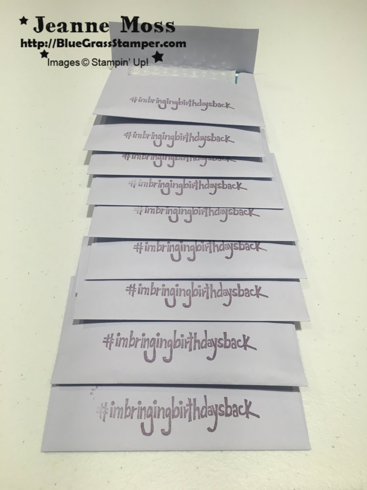 Shannon designed a stamp, #imbringingbirthdaysback, and we all wanted one, so Stampin’ Up! is now manufacturing them.
